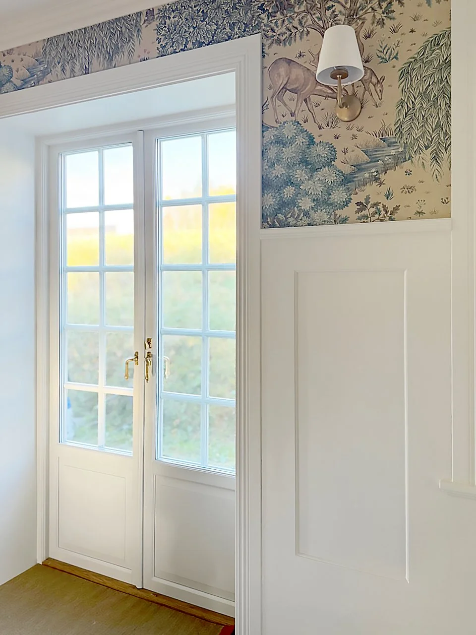 Altandörrar: Spröjsade fönsterdörrar med handtag i mässing