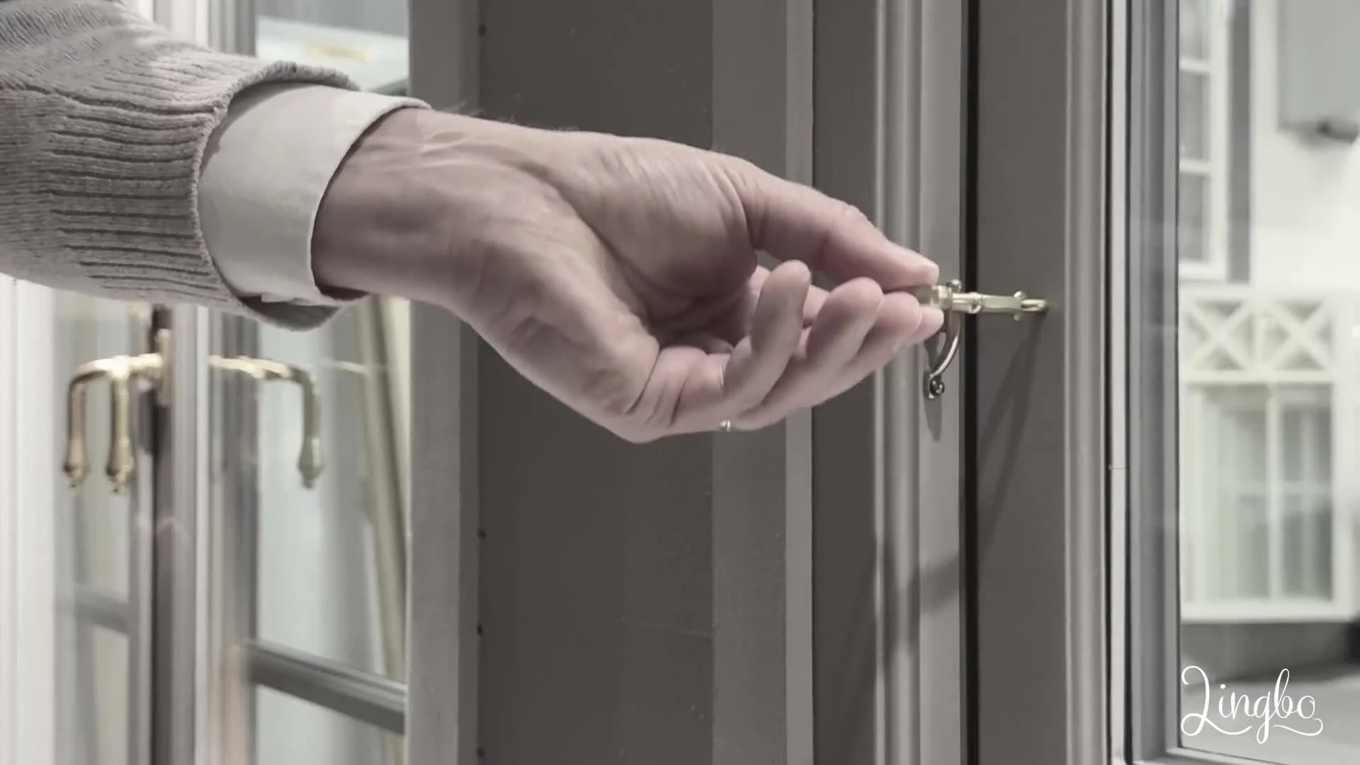 Koppelhake låser delningsbara fönsterbågar.